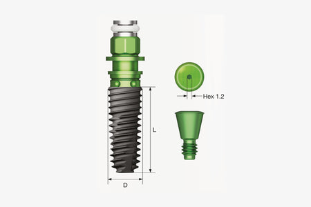 Bone-level type implant with an internal hex 11° tapered connection structure.
